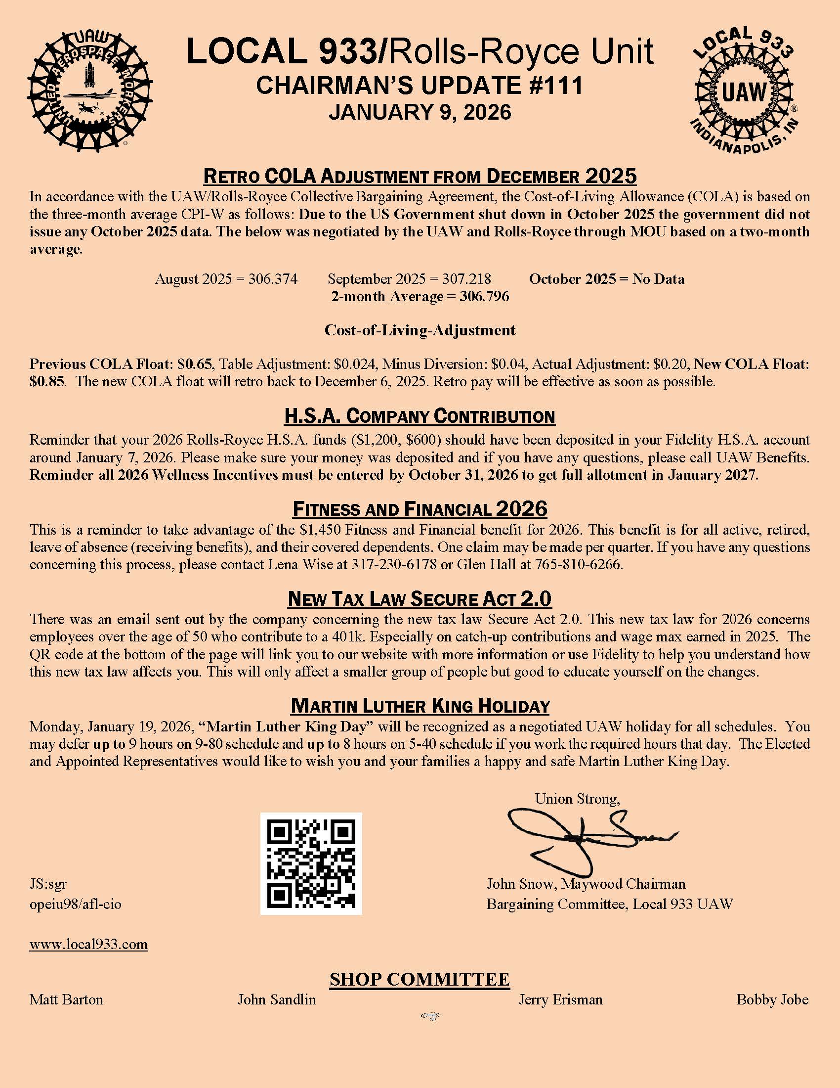 Chairman's Updates Local 933/Rolls-Royce Unit Chairman's Update #111 Matthew Mann 09 Jan, 2026 Social share icons