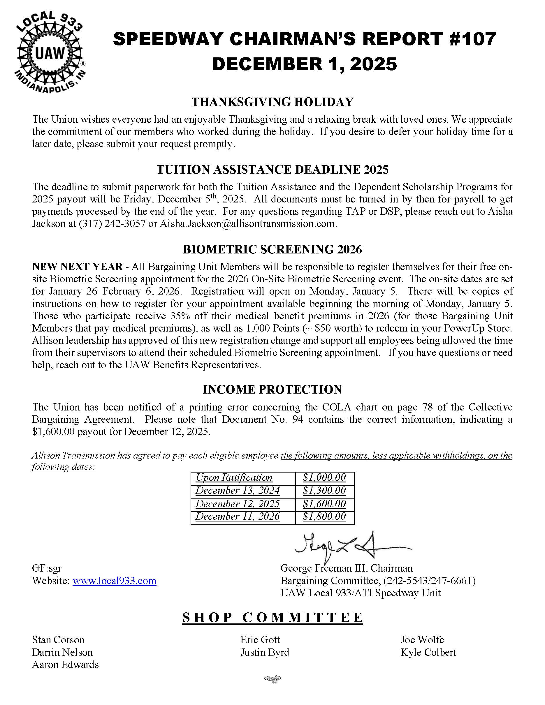 Speedway Chairman's Report #107