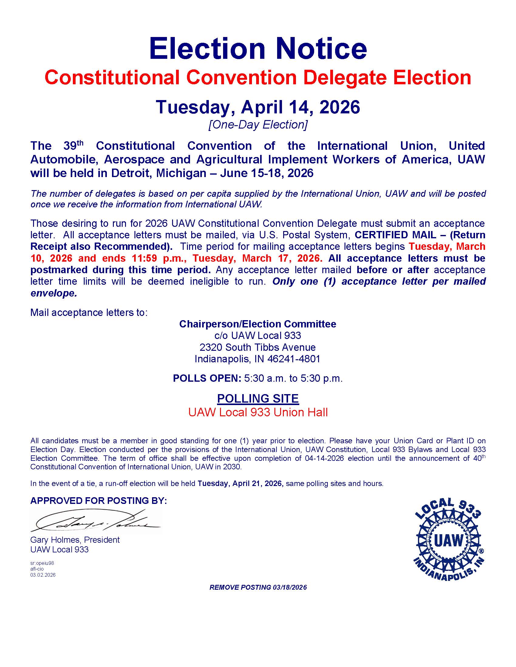 Latest Union Board Posting